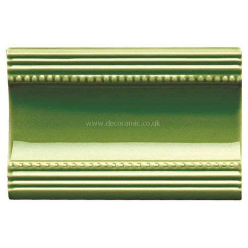 Original Style Plain Cornice Moulding Pavillion Green 152 x 75mm | 6 x 3" GPV9929, it is a small gloss decorative green ceramic wall tile, it has a straight edge that will give a victorian style to your room, it is suitable for most indoor applications. For prices please contact us, this is normally sold per tile.
