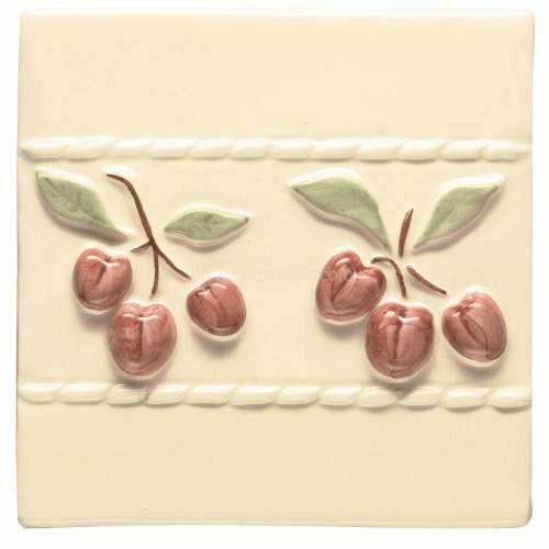 This Classic Cherry Border Decorated Tile 105 x 105 mm part of Winchester Residence Raised Fruit with a reflective finish included in the white & cream colour family, a ceramic tile that can be fitted in indoor wall applications like bathroom or kitchen. This product can be fitted primarily bathroom or kitchen areas, with a soft antique look, a glazed texture this crackle wall tile measures 105x105mm