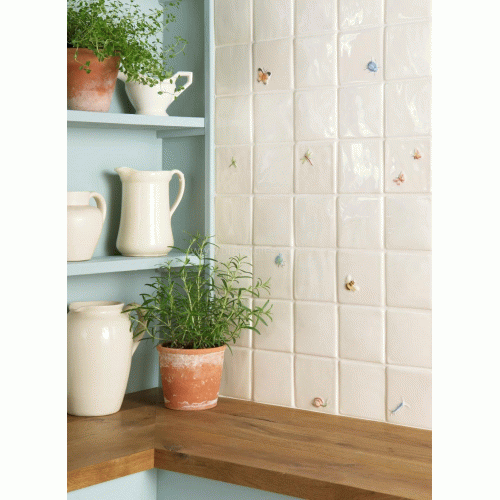 This Classic Grasshopper Decorated Tile 105 x 105 mm part of Winchester Residence Bugs with a reflective finish included in the white & cream colour family, a ceramic tile that can be fitted in indoor wall applications like bathroom or kitchen. This product can be fitted primarily bathroom or kitchen areas, with a soft antique look, a glazed texture this crackle wall tile measures 105x105mm