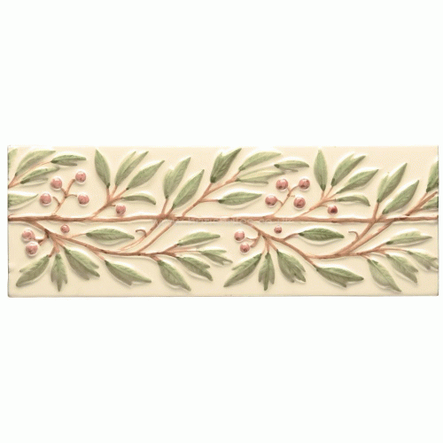 W.HP1235 Winchester Leaf and Berry Decorated Tile 215 x 76 mm