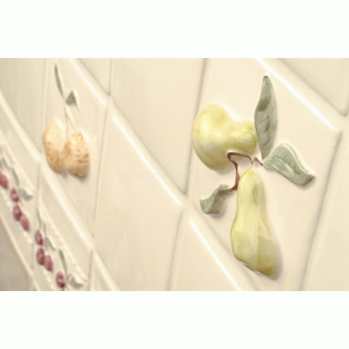This Classic Two Pears Decorated Tile 105 x 105 mm part of Winchester Residence Raised Fruit with a reflective finish included in the white & cream colour family, a ceramic tile that can be fitted in indoor wall applications like bathroom or kitchen. This product can be fitted primarily bathroom or kitchen areas, with a soft antique look, a glazed texture this crackle wall tile measures 105x105mm