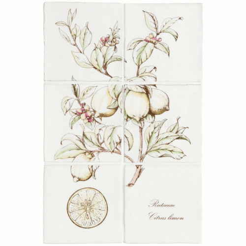 The Decoratives Lemon 6 tile panel on Papyrus Decorated Tile 260 x 390 mm has been included in the Residence Botanical Fruit collection and features a reflective finish and is a white & cream ceramic tile that can be fitted in indoor wall applications like bathroom or kitchen. This product can be fitted primarily bathroom or kitchen areas, with a soft antique look, a glazed texture this crackle wall tile measures 260x390mm
