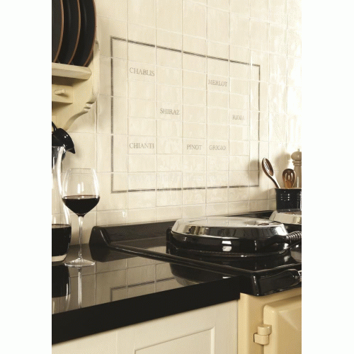 The Decoratives Merlot in Grey on Papyrus Decorated Tile 130 x 63 mm has been included in the Residence Wine Cellar collection and features a reflective finish and is a white & cream ceramic tile that can be fitted in indoor wall applications like bathroom or kitchen. This product can be fitted primarily bathroom or kitchen areas, with a soft antique look, a glazed texture this crackle wall tile measures 130x63mm